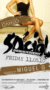 As one of Miami’s most demanded dj’s by promoters and nightclubs alike he has taken up residencies & headlined at numerous South Florida venues, including Space, Parkwest, Opium/Prive, Tantra, BED, Forge, Dream, Karu & Y, Shore Club, Florida Room, Viceroy, Aero Bar, Nikki Beach, The Fifth, MIA, Space, Nikki Beach, La Marina and many, many more. In between club performances, Miguel G. has DJ’d fashion shows for designers Ed Hardy and Christian Audigier, as well as celebrity events for A-listers including Nelly Furtado, Brooke Hogan, DMX, Timbaland, Rick Ross, Pitbull, and Fat Joe. Some of his earlier gigs included performances for legends Slick Rick, Ice Cube, Biz Markie, Stevie B & Lisa Lisa & The Cult Jam.